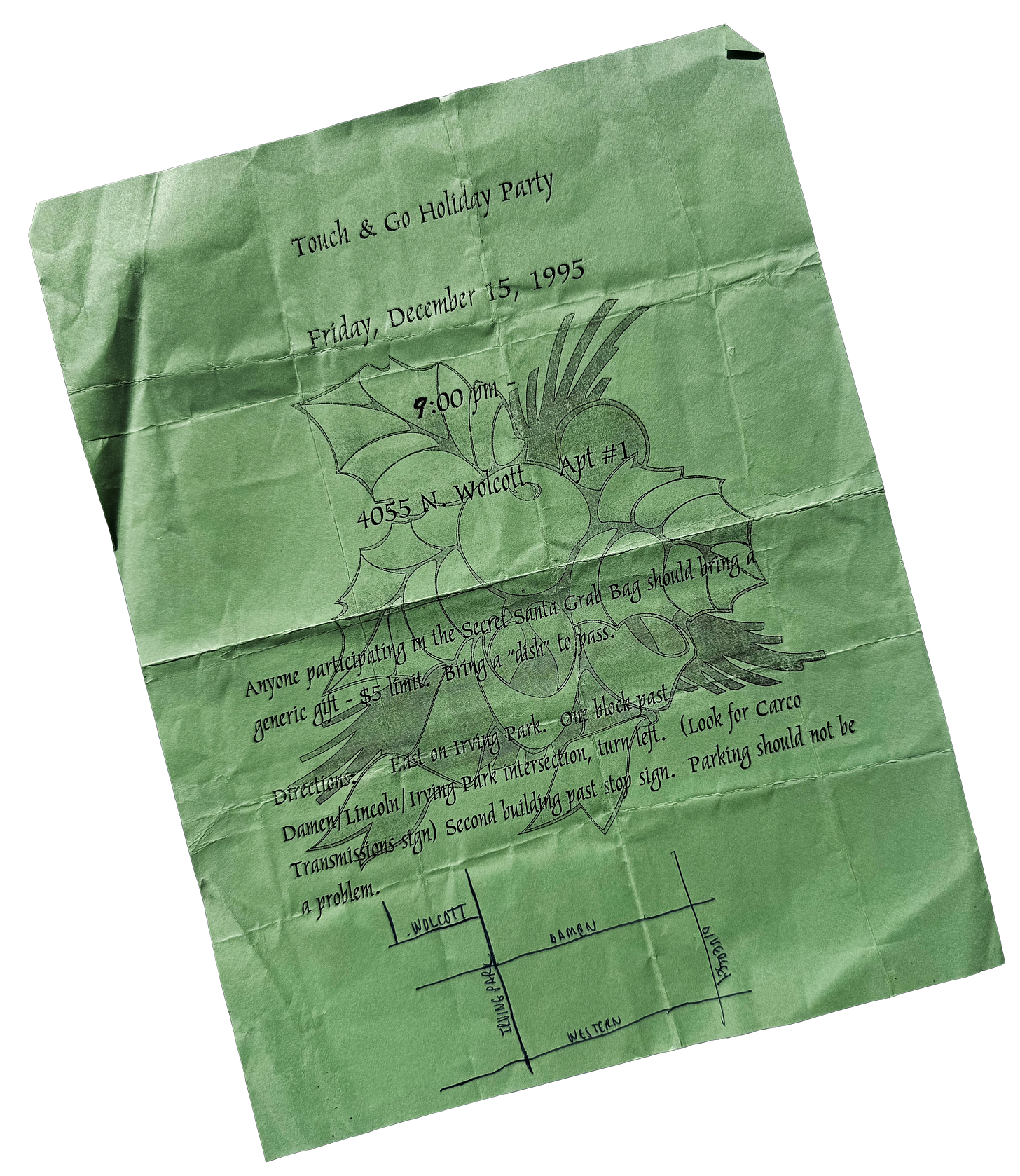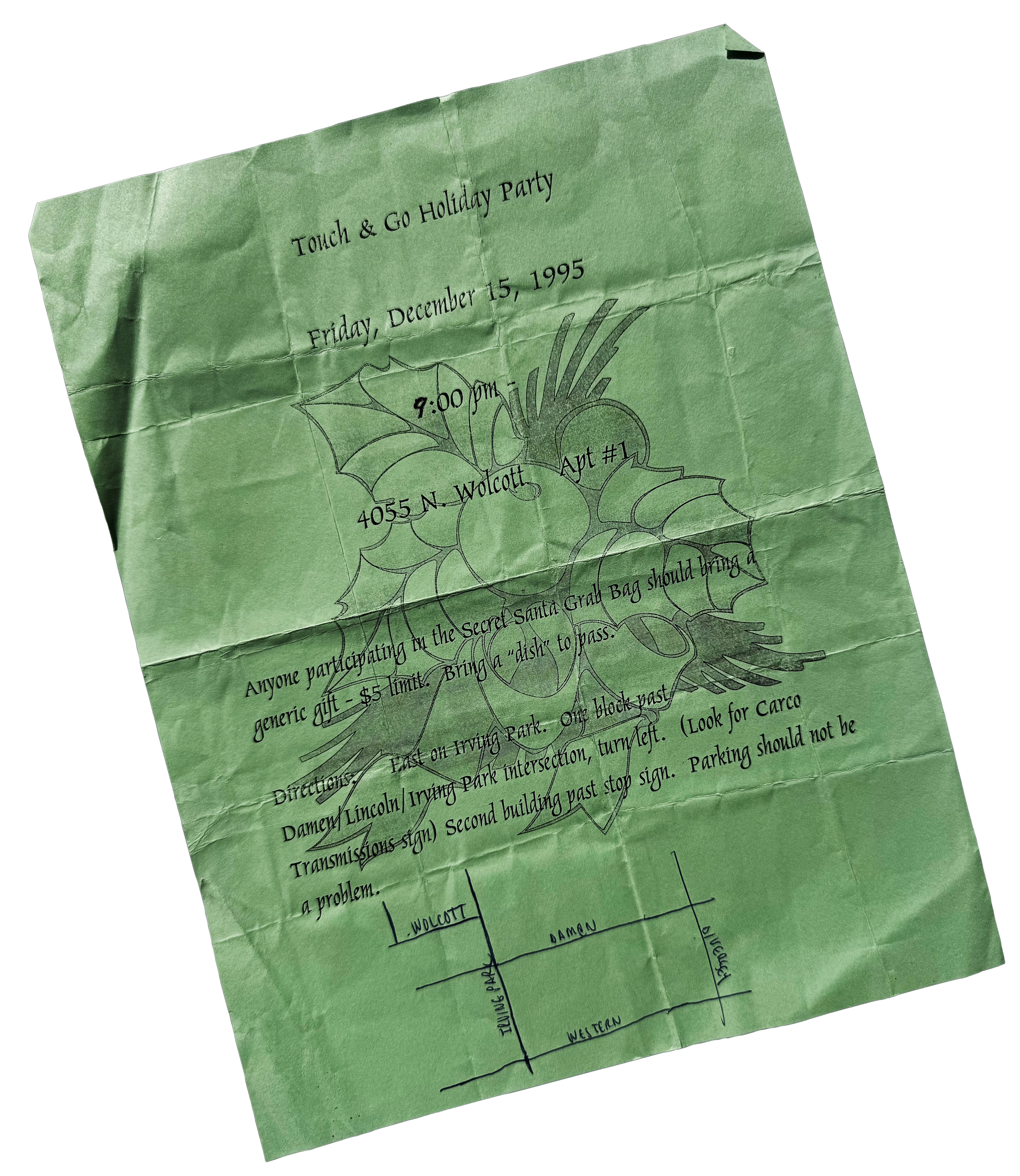 I’m trying to blend into the wall. I avoid house parties—but they are nearly unavoidable in college. I have learned how to be at one but unnoticed. Tonight I’m making an exception. There is no way I am missing the Touch and Go Holiday Party.